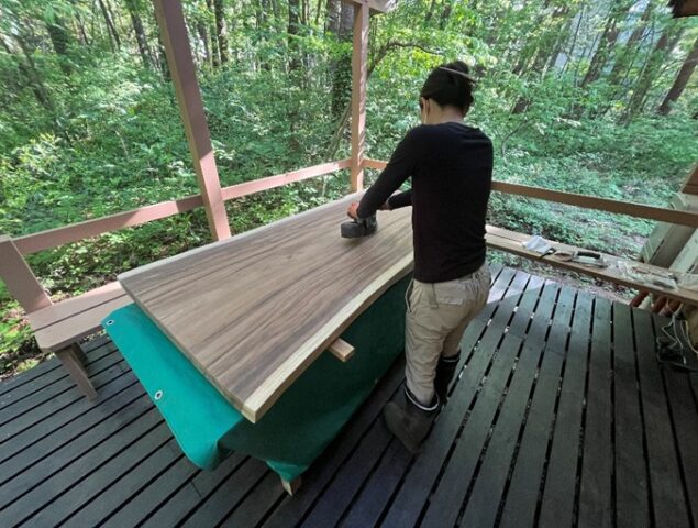 板の耳も綺麗に磨き、真ん中にあった深い傷も無くなり、つるつるの表面に最終仕上げました。