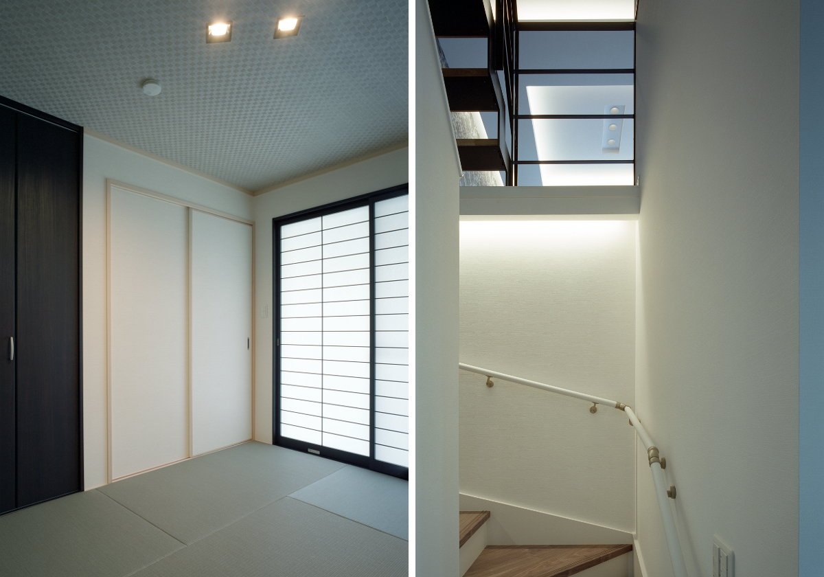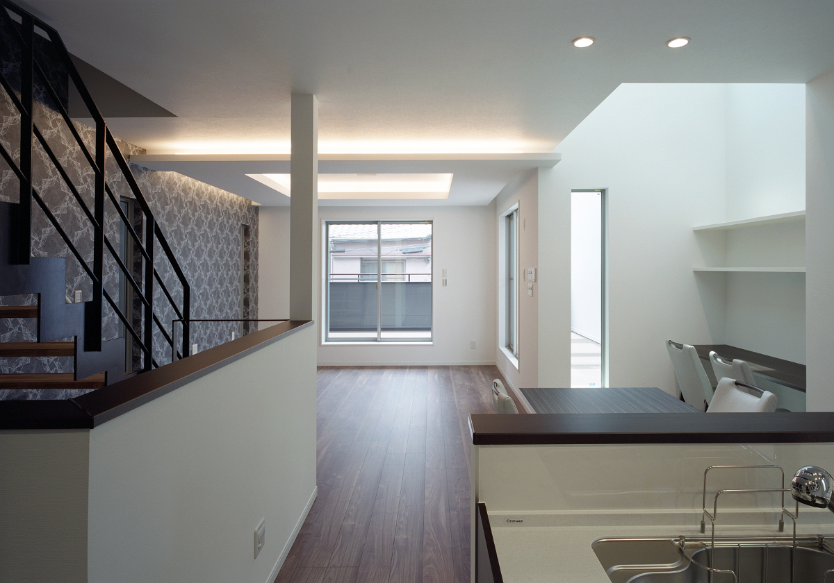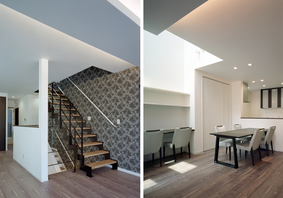 吹抜けをつくり光を多く室内に取り込む間取りとなるよう工夫しました。