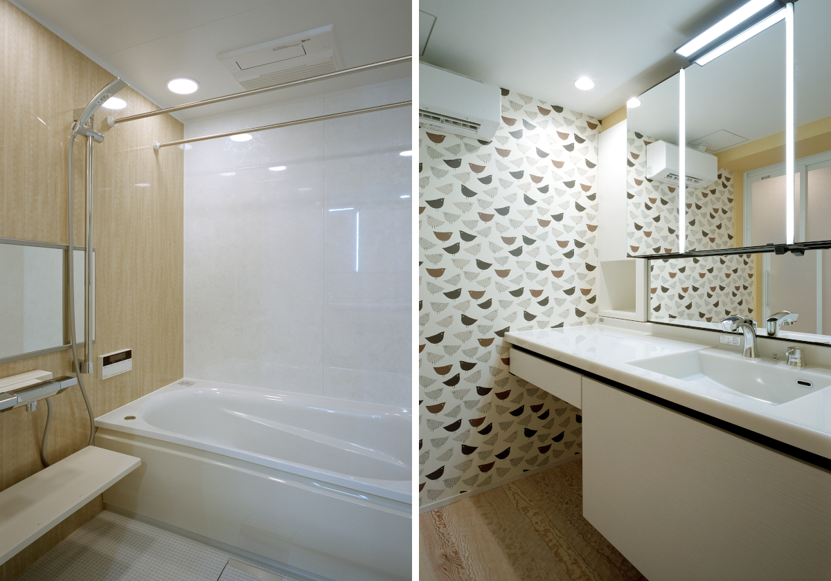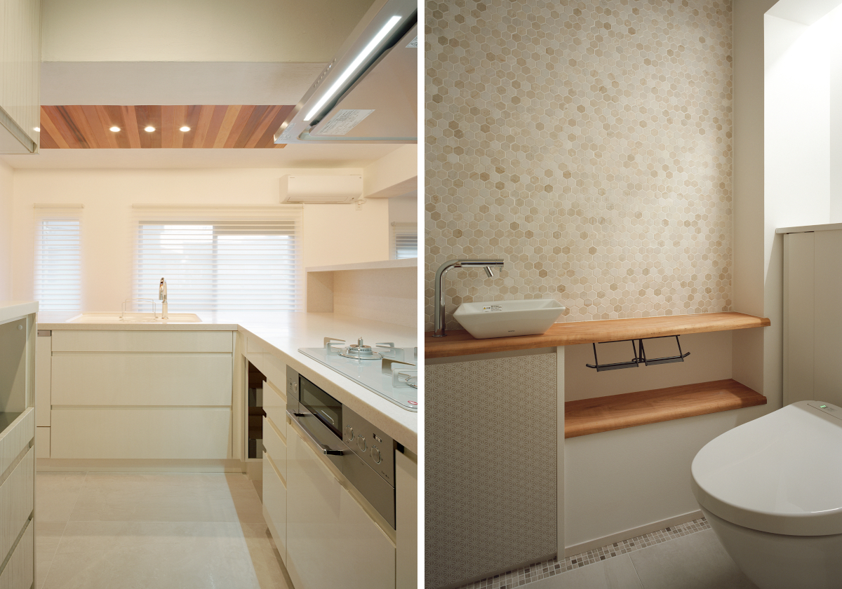 これをどうにか解消するため詳細に設計し、古い配管類を全てやりかえ水廻りの間取りも位置自体を変更するなど、広い空間の確保に知恵を注ぎました。